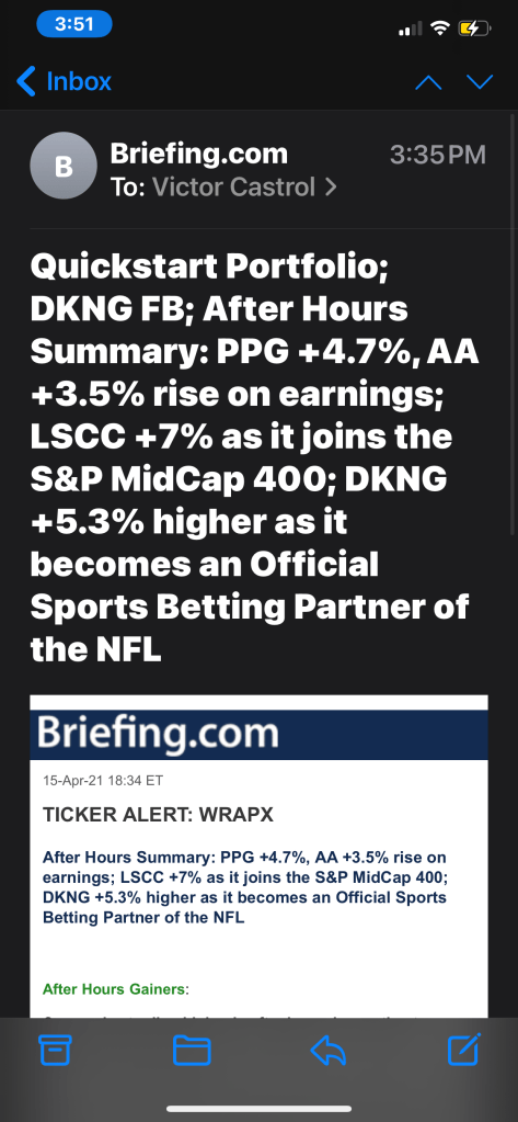 Congrats Johnnie! $DKNG #nfl Posted by..papichuloApril 15, 2021Posted inFinanceTags:bag, Boss, cali girls, california love, DKNG, douchebags, hollywood, hustle and grind, industry, KING, NVDA, RAIDERS, Skilled Cat, sucker, weed Thanks for paying it forward to a young buck back in the day. Share this:Share Share on X (Opens in new window) X Share on Facebook (Opens in new window) Facebook Share on LinkedIn (Opens in new window) LinkedIn Share on Telegram (Opens in new window) Telegram Share on WhatsApp (Opens in new window) WhatsApp Email a link to a friend (Opens in new window) Email Like Loading... Published by ..papichulo Trader View more posts
