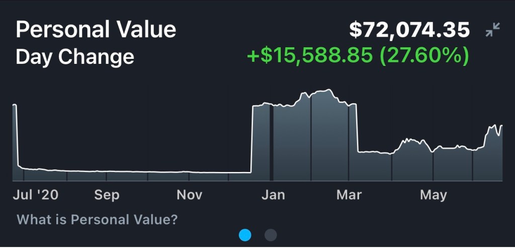 Yeah, making 27% yesterday didn’t suck. Posted by..papichuloJune 23, 2021Posted inFinanceTags:aapl, AMZN, bag, Beast Mode, Boss, california love, crypto, GME, GOAT, hustle and grind, KING, NVDA, RAIDERS, Seeking Alpha, Skilled Cat, SQQQ, trader, TSLA Share this:Share Share on X (Opens in new window) X Share on Facebook (Opens in new window) Facebook Share on LinkedIn (Opens in new window) LinkedIn Share on Telegram (Opens in new window) Telegram Share on WhatsApp (Opens in new window) WhatsApp Email a link to a friend (Opens in new window) Email Like Loading... Published by ..papichulo Trader View more posts