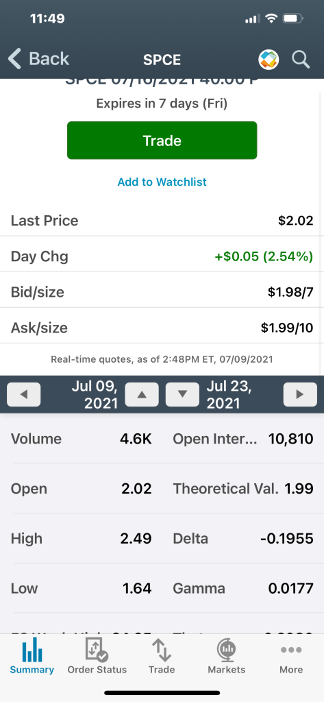 Load SPCE puts small. Posted by..papichuloJuly 9, 2021Posted inFinanceTags:puts, putz, SPCE Share this:Share Share on X (Opens in new window) X Share on Facebook (Opens in new window) Facebook Share on LinkedIn (Opens in new window) LinkedIn Share on Telegram (Opens in new window) Telegram Share on WhatsApp (Opens in new window) WhatsApp Email a link to a friend (Opens in new window) Email Like Loading... Published by ..papichulo Trader View more posts